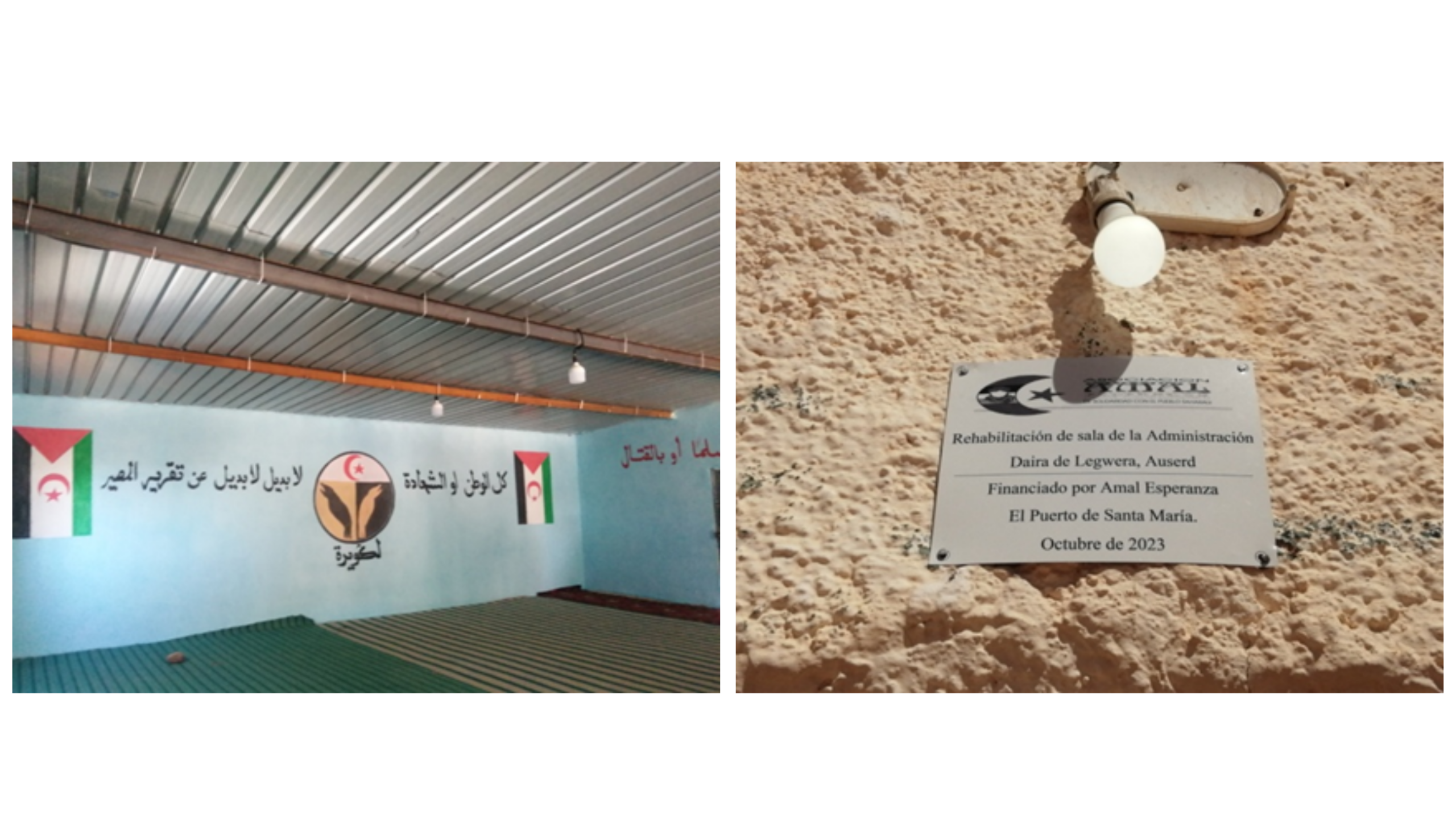 Durante los años de esta década, Amal Esperanza, coordinando a otras asociaciones pertenecientes a la Federación Al Huriya-Cádiz, está afrontando las rehabilitación de estos edificios, fundamentales para el trabajo de las direcciones de las dairas y, por tanto, de la población saharaui, en sus asuntos y necesidades más básicas y perentorias.